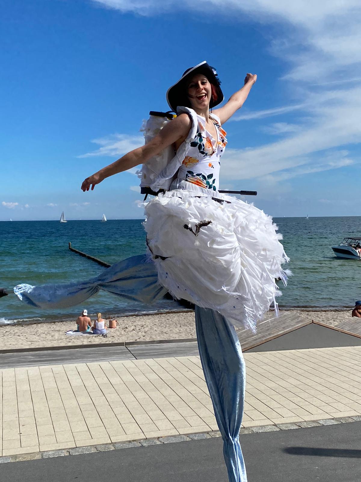 Als Stelzentheater bin ich nicht nur eine faszinierende Alleinunterhalterin, ich bin auch ein grandioser Blickfang!